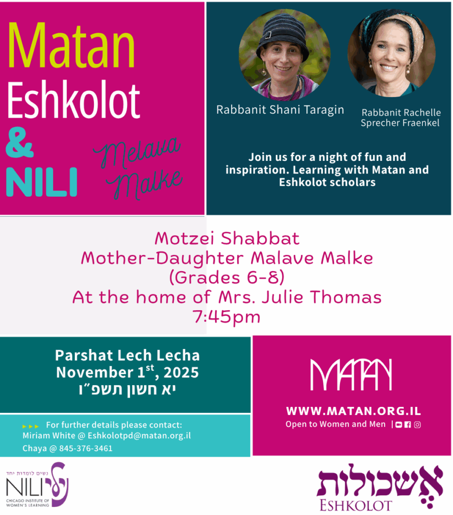 Using the resources of the Yeshiva University Torah Mitzion Kollel and of local and visiting scholars, NILI provides women of all ages and backgrounds in the greater Chicagoland area a unique array of learning opportunities and the ability to connect with others on their journeys in Torah. The diverse Torah offerings of NILI will enable women to develop and enhance their Jewish lives, celebrating a commitment to halacha and tradition that includes an appreciation of general society and religious significance of the State of Israel.